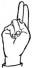 На ћирилици написано МИЛИСАВА КНЕЖЕВИЋ састоји се из 16 слова [?]. Исписано ћириличном једноручном азбуком за глувонеме: